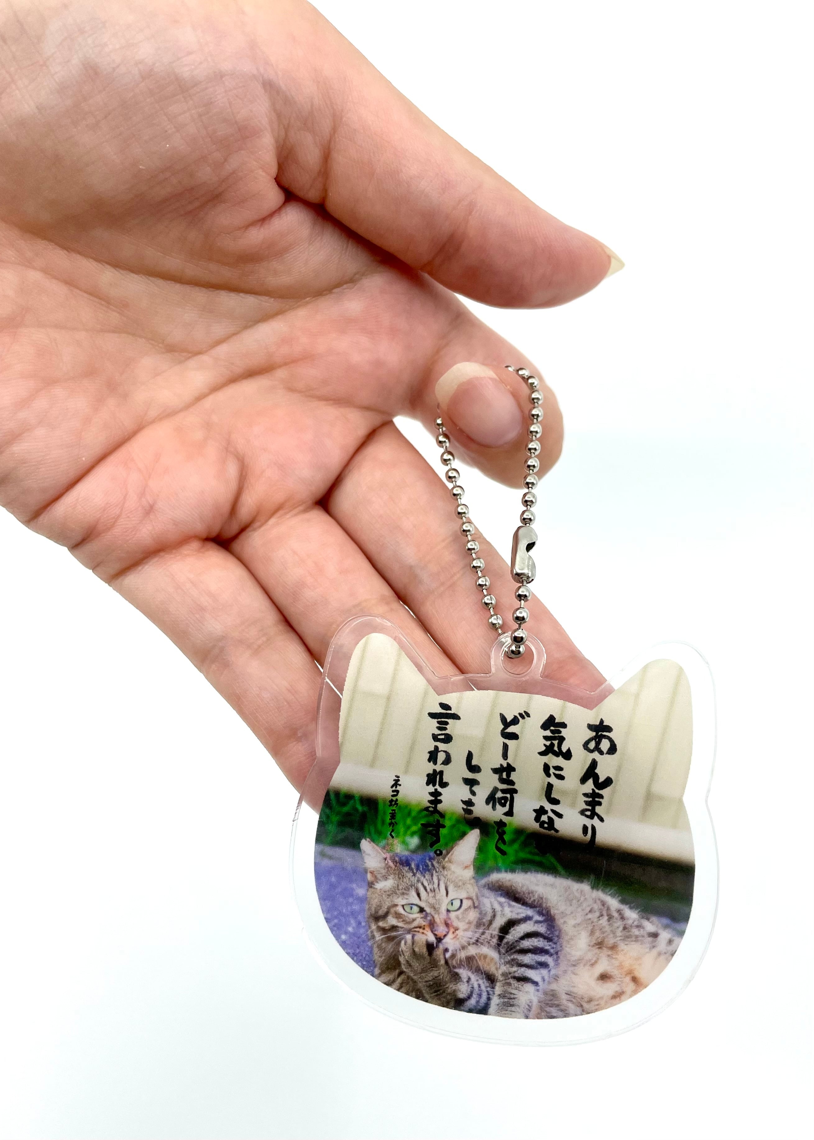 ネコ坊主さんの法語が書かれたネコ型のアクリルキーホルダーです。普段使いだけでなく、ちょっとしたプレゼントにも最適です。