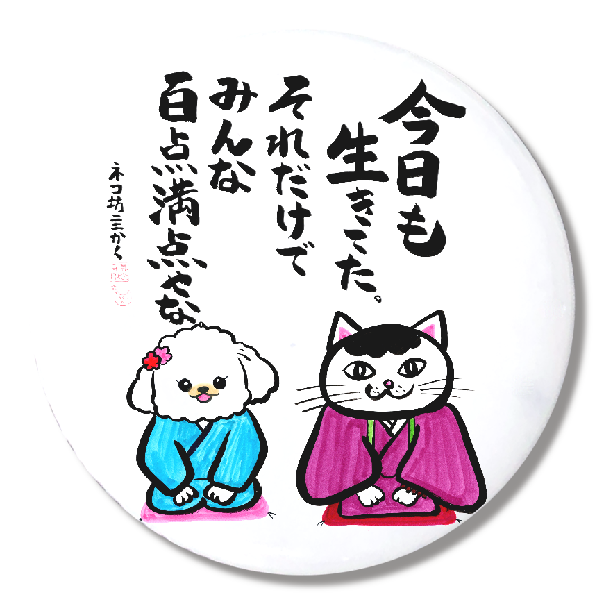 ネコ坊主さんの法語とイラストが書かれた缶バッジです。ステンレス製で、耐久性に優れ、普段使いにもピッタリ!